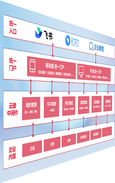 对协作平台提供支持服务,,支持企业应用与协作平台对接,,,,包含组织同步、、、、消息集成、、待办集成等。。。。支持目前主流的协作平台:钉钉、、、企微和飞书。。。